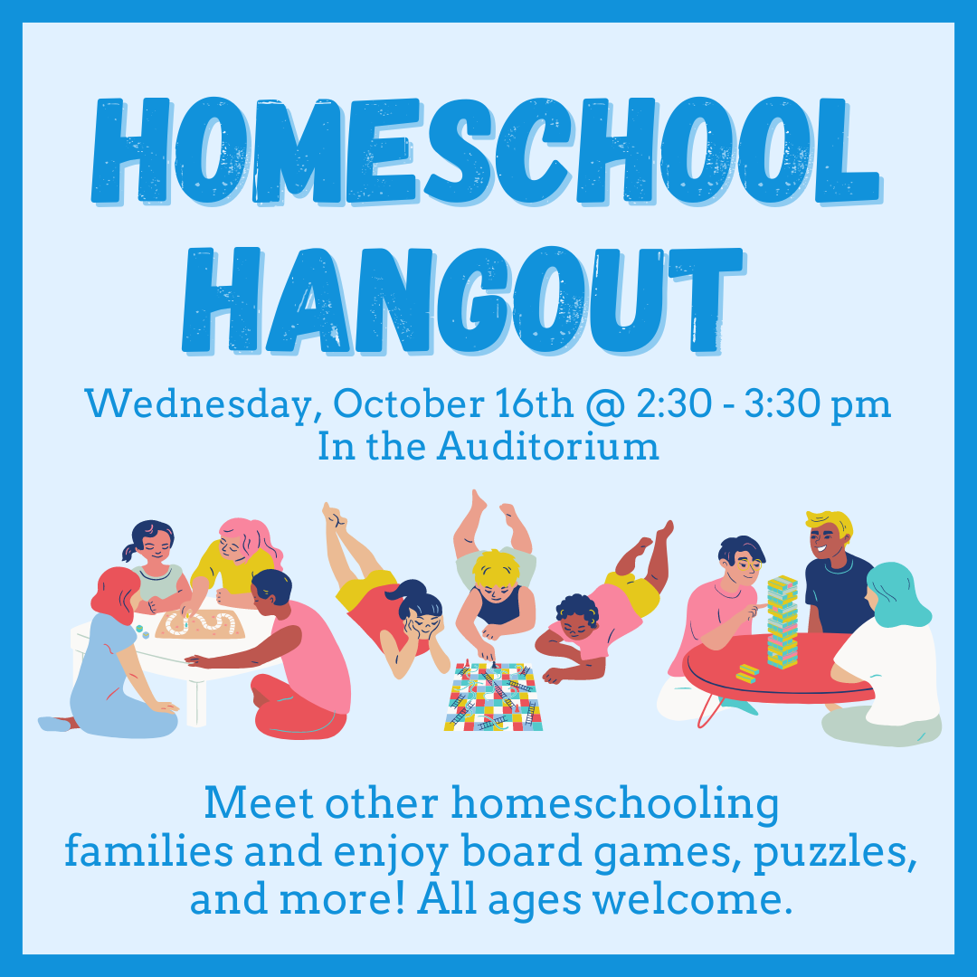 Meet other homeschooling families and enjoy board games, puzzles, and more! All ages welcome.