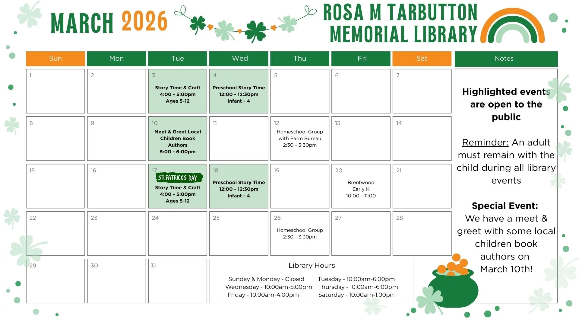 March 2026 Events at the Rosa M. Tarbutton Memorial Library