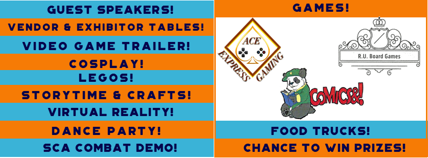 Join us for a free, family-friendly celebration of science fiction, fantasy, anime, LEGO, and so much more! We will have speakers, vendors, games, and activities throughout the library, along with a video game trailer and food trucks in the parking lot.